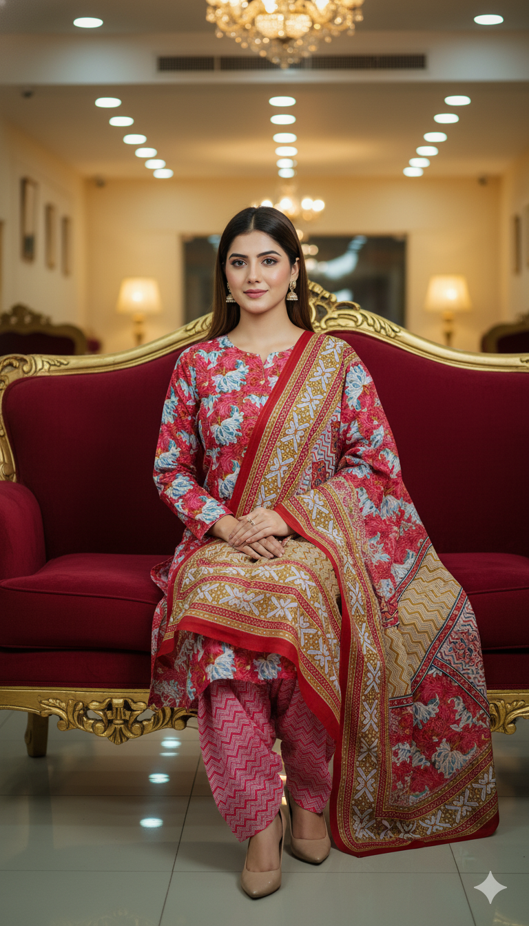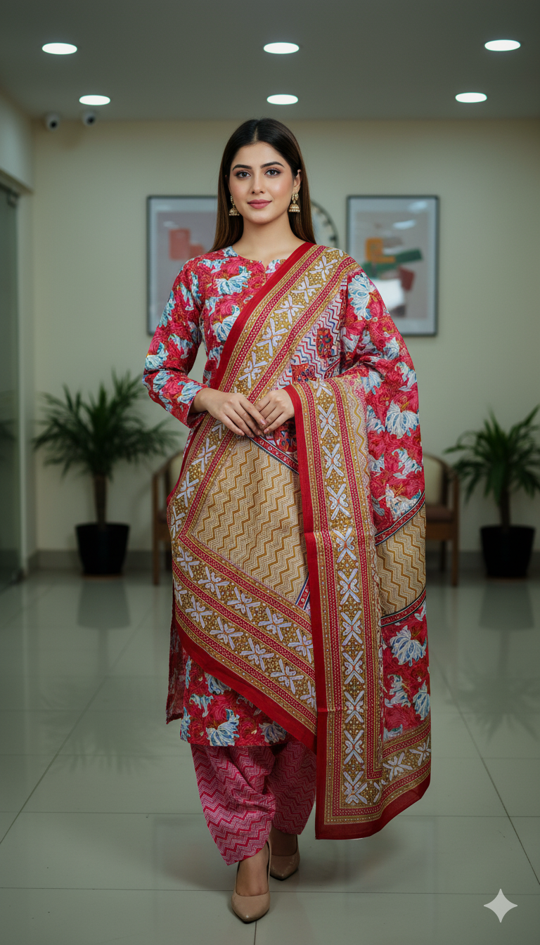 রুচিশীল নারীদের জন্য তৈরি জয়পুরির প্রিমিয়াম থ্রিপিস—যেখানে ঐতিহ্যবাহী জয়পুরি প্রিন্টের সৌন্দর্য আর আধুনিক ফ্যাশনের পরিমার্জিত ছোঁয়া একসাথে পাওয়া যায়। প্রতিটি থ্রিপিস বাছাই করা উন্নত মানের কাপড়ে তৈরি, যাতে থাকে আরাম, স্থায়িত্ব ও এলিগ্যান্ট লুক।