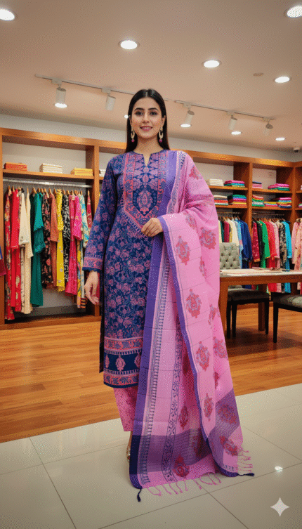 ✨ ব্লক প্রিন্ট থ্রিপিস – বিস্তারিত বিবরণ ✨
